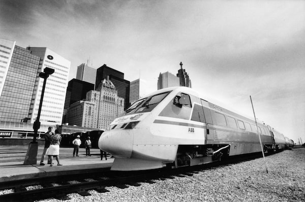 The first high-speed train in Canada, the X 2000, stopped in Toronto in July 1993. It was the second stop on a five-city tour along the Windsor-Quebec rail corridor. This was the first time a high speed train had ever been in the country.Roger Hallett/For The Globe and Mail