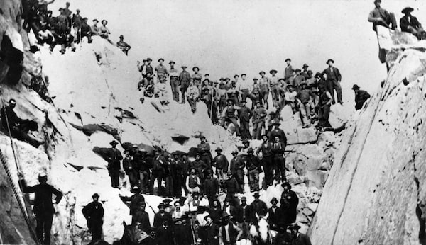 Workmen on the Canadian Pacific Railway line circa 1880 to 1885.The Canadian Press