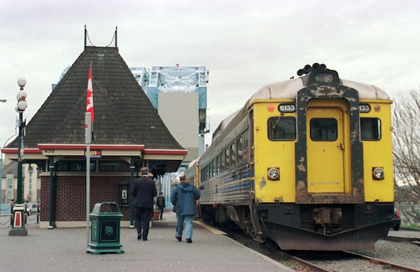 Passengers head toward the outgoing morning train at the Via Rail station in Victoria, B.C., in 2002. The last passenger train ran on Vancouver Island in 2011.Diana Nethercott/The Globe and Mail