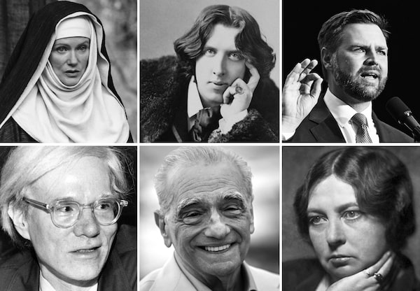Catholics in popular culture: (top left) Hildegard von Bingen played by Barbara Sukowa, Oscar Wilde, JD Vance, (bottom from left) Andy Warhol, Martin Scorsese, Sigrid Undset.ZEITGEIST FILMS/AP PHOTO/GETTY IMAGES
