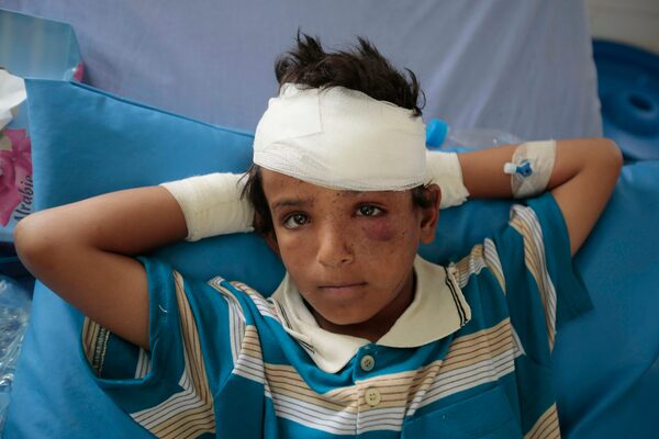 Saada, Yemen, 2018: A child injured in a Saudi-led coalition air strike recovers in hospital.Hani Mohammed/The Associated Press