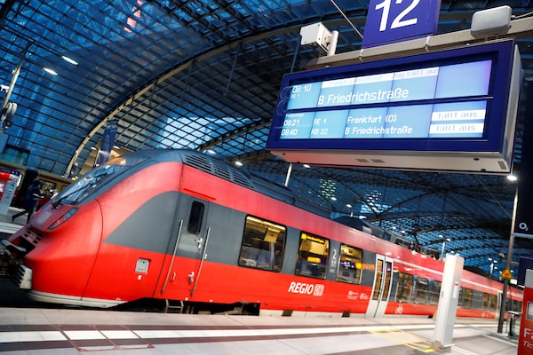 A train is shown at the Hauptbahnhof central station in Berlin.Fabrizio Bensch/Reuters