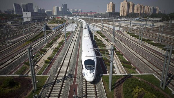 A CRH high-speed train leaves the Beijing South station for a test run to Shanghai.Alexander F. Yuan/The Associated Press