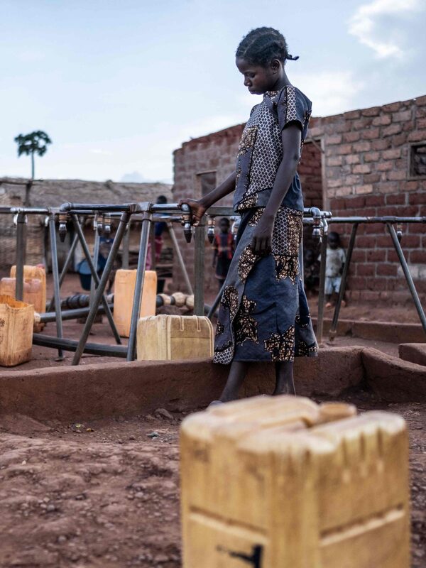 A girl tries, without success, to fill her water bucket at a camp in Bria, Central African Republic, one of several refuges for civilians displaced by fighting in the country.BARBARA DEBOUT/AFP via Getty Images
