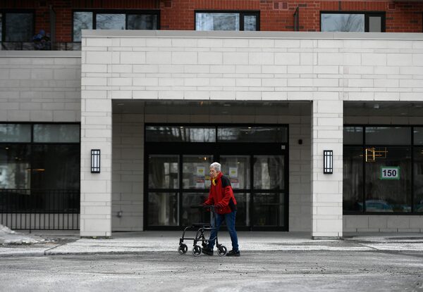 A person goes for a walk outside the Promenade retirement residence in Ottawa on March 28, 2020.Justin Tang/The Canadian Press