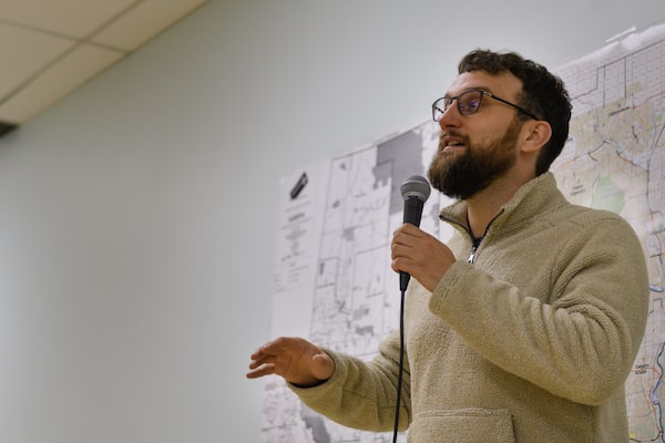 David Parker, founder of Take Back Alberta, speaks to a small audience in the basement of Deer Run Community Centre in Calgary on April 24, 2023.Jude Brocke/The Globe and Mail