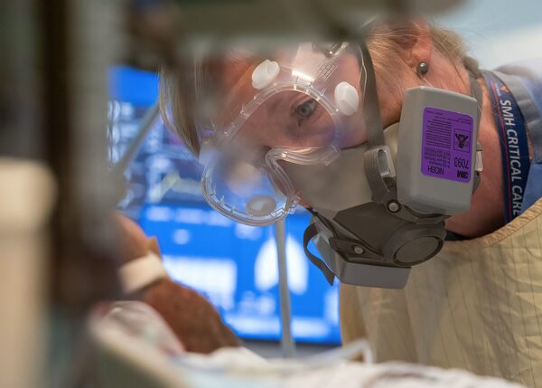 A registered nurse speaks to a patient in a COVID-19 intensive care unit in Surrey, B.C.Jonathan Hayward/The Canadian Press