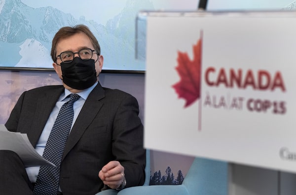 Federal Minister of Natural Resources Jonathan Wilkinson waits to speak to the media at the COP15 biodiversity conference in Dec. 2022.Ryan Remiorz/The Canadian Press