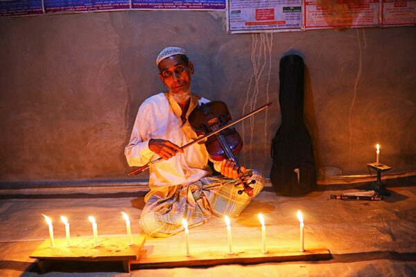 Amir Ali, a Rohingya violinist who was a member of a wedding band in the northern Rakhine State of Myanmar, poses for a picture after attending a weekly prayer event at the Kutupalong refugee camp.Mohammad Ponir Hossain/Reuters