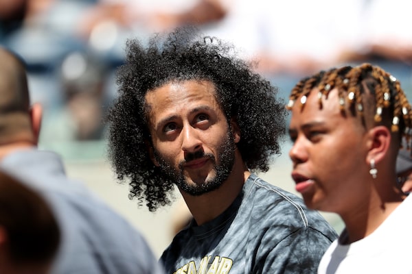 Former San Francisco 49ers quarterback Colin Kaepernick watches a match between Naomi Osaka and Magda Linette at the 2019 US Open.Al Bello/Getty Images