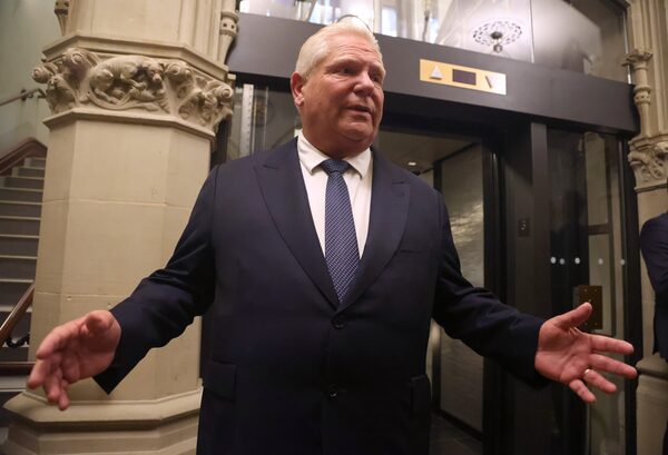 Ontario Premier Doug Ford speaks to reporters as he leaves a meeting with Prime Minister Mark Carney on Parliament Hill in Ottawa, on Monday, Aug. 18, 2025. THE CANADIAN PRESS/Patrick DoylePATRICK DOYLE/The Canadian Press