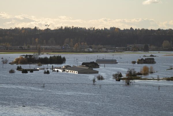 Rising flood waters surround buildings in Abbotsford, B.C., Nov. 16, 2021.JONATHAN HAYWARD/The Canadian Press