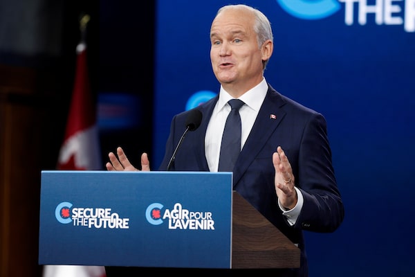 Conservative Leader Erin O'Toole speaks at the Westin hotel, in Ottawa, on Aug. 15.LARS HAGBERG/Reuters