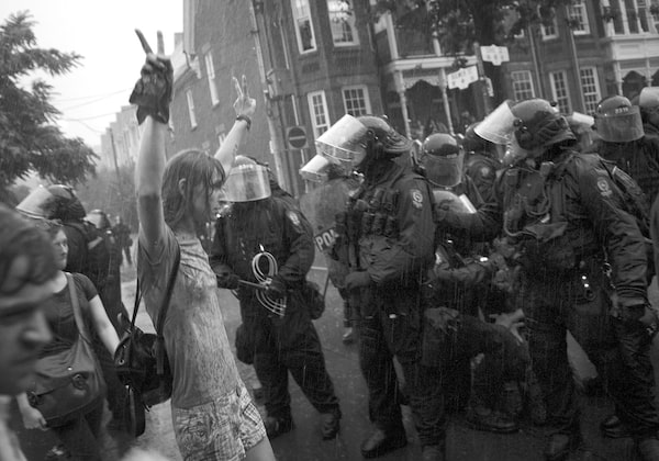 Demonstrators and police face off in the rain in downtown Toronto in June, 2010, during the G20 summit.Kevin Van Paassen/The Globe and Mail