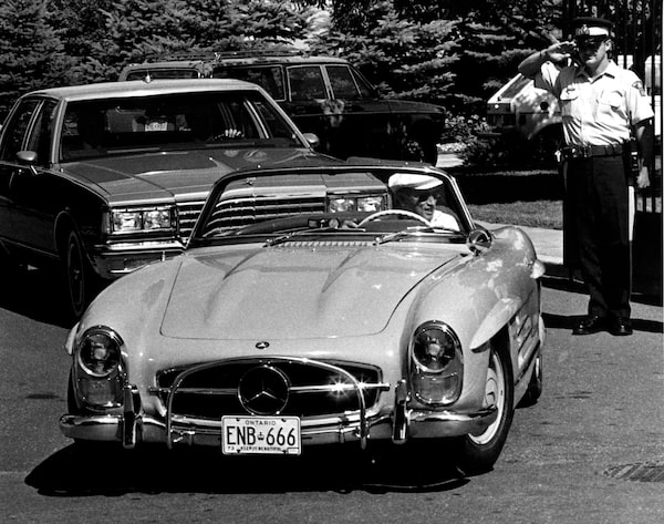 Former Prime Minister Pierre Trudeau gets a final slaute from RCMP guard as he leaves 24 Sussex Dr. June 30, 1984 after resigning as prime minister.The Canadian Press