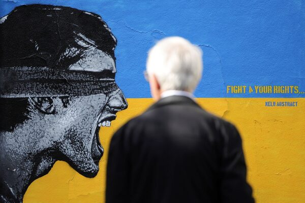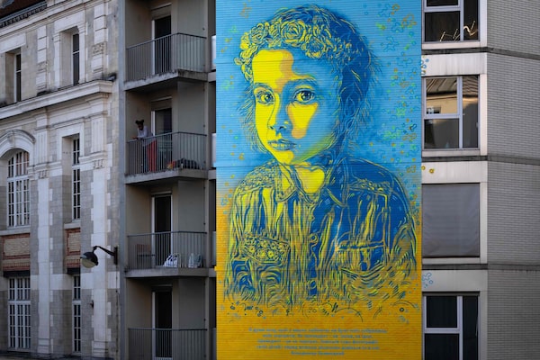 Pro-Ukraine street art in Paris by artists Kelu Abstract and Christian Guemy, a.k.a. C215.Sarah Meyssonnier/Reuters; JOEL SAGET/AFP via Getty Images