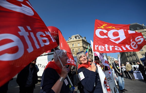 French pensioners and activists take part in a March 24 demonstration in Paris.EMMANUEL DUNAND/AFP via Getty Images
