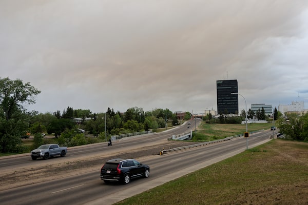 A large pall of smoke looms over Grande Prairie, Alta. on Thursday, June 5, 2025.Jesse Boily/The Globe and Mail