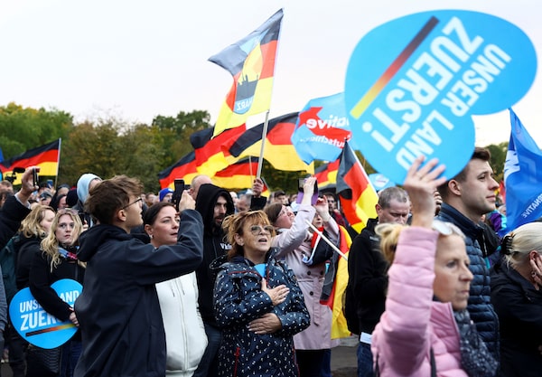 There’s no shortage of evidence of extreme right-wing views held by Mr. Höcke, a former history teacher. In 2017, he challenged Germany’s remembrance culture, calling the Berlin site dedicated to honouring the millions of Jewish people killed in the Holocaust a “monument of shame.” The response by civil society was swift – yet a regional AfD arbitration panel did not find his actions “harmful to the party.” Then, in 2019, the public broadcaster ZDF took sentences from Mr. Höcke’s book and asked AfD members to guess whether they came from their colleague or from Hitler’s Mein Kampf; many were tripped up. And Mr. Höcke was charged in June for using a Nazi Stormtrooper slogan – “Alles für Deutschland,” meaning “everything for Germany” – in a 2021 speech in the city of Merseburg.