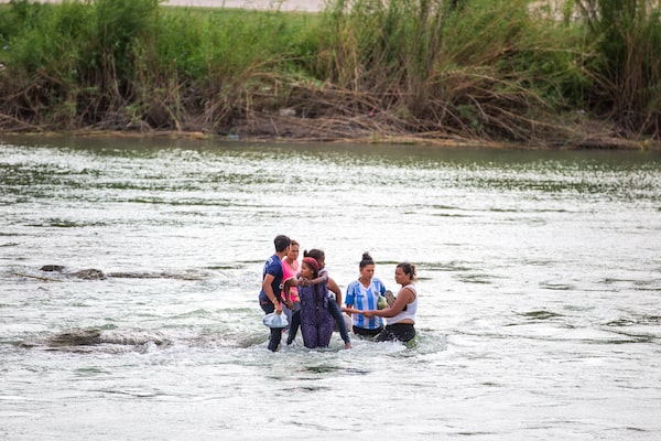 A group of Central American migrants attempt to cross the Rio Grande in Eagle Pass, Texas on May 24, 2019.ILANA PANICH-LINSMAN/The New York Times News Service