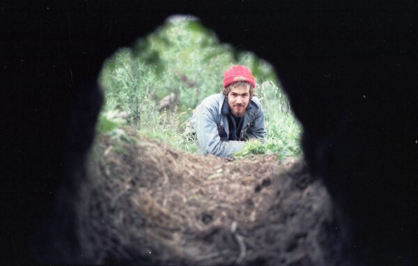A wildlife biologist looks inside a grizzly bear den in Fort Good Hope, NWT.Supplied