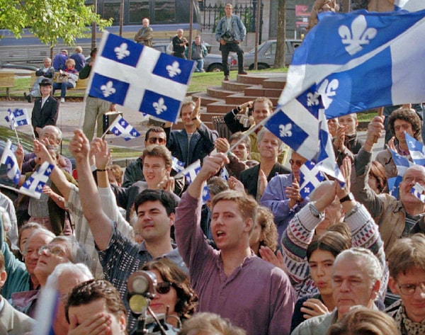 Separatist supporters wave Quebec flags as Quebec Premier Jacques Parizeau kicks off the referendum campaign in Quebec City in October, 1995.Jacques Boissinot/The Canadian Press