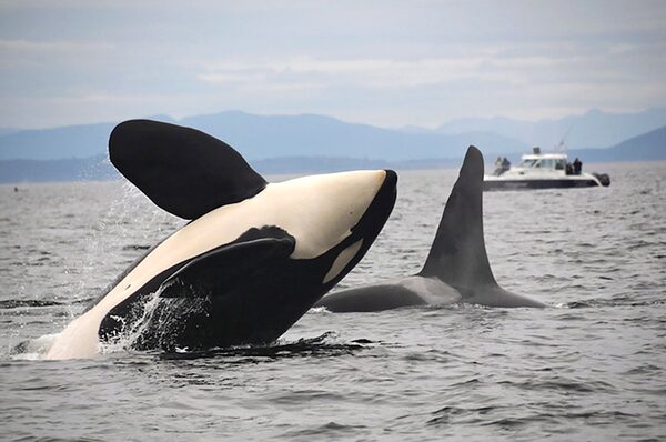 Two southern resident killer whales are seen in this undated handout photo. Canada has many reasons to concern itself with the conservation and management of whales.HO