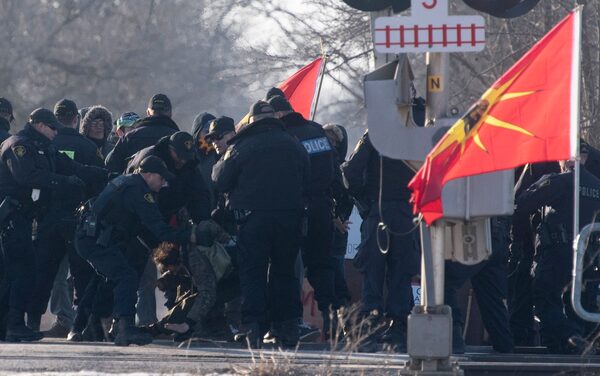 I watched on Monday evening as one of my Mohawk sisters approached members of the Ontario Provincial Police with love and kindness at the railway tracks on the sacred land at Tyendinaga – on the same day that the police violently enforced colonial law upon Mohawk land protectors standing in solidarity with the Wet’suwet’en hereditary chiefs who oppose the Coastal GasLink project crossing through their traditional lands in British Columbia.