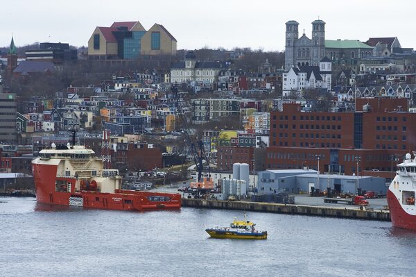 An offshore oil supply vessel docks in St John's. Newfoundland’s oil sector is several times less carbon-intensive than Alberta’s oil sands, on a per barrel basis.