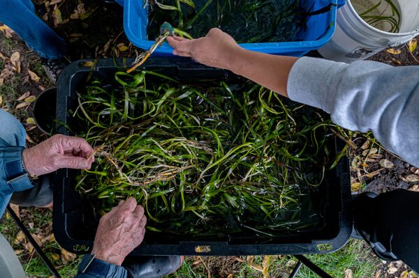 Volunteers help the SeaChange society prepare eelgrass for transplant as part of a seagrass restoration effort in Cowichan Bay, Vancouver Island.Shane Gross/The Globe and Mail