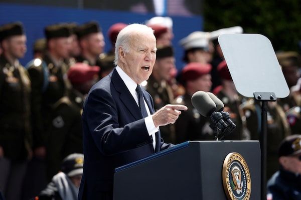 U.S. President Joe Biden speaks at a ceremony to mark the 80th anniversary of D-Day at the Normandy American Cemetery and Memorial in Colleville-sur-Mer, France, on June 6.Benoit Tessier/Reuters