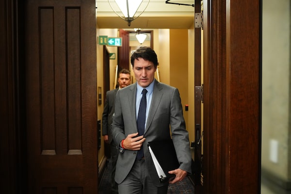 Prime Minister Justin Trudeau makes his way through the foyer outside the House of Commons prior to Question Period in Ottawa on Dec. 4.Sean Kilpatrick/The Canadian Press