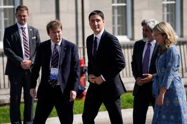 Prime Minister Justin Trudeau, center, arrives ahead of Pope Francis' visit to the Citadelle de Quebec, on July 27.John Locher/The Associated Press