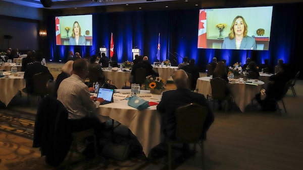 Canada's Ambassador to the United States Kirsten Hillman speaks via video link at the Global Business Forum in Banff, Alta., on Sept. 24, 2020.Jeff McIntosh/The Canadian Press