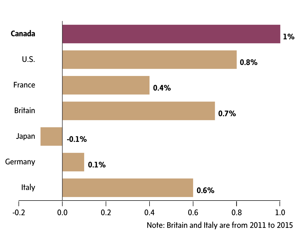 G7 Countries, from 2011 to 2016,%
