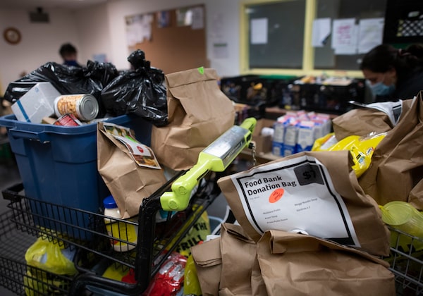 A cart with food donations is brought into the Parkdale Community Foodbank on Dec. 9, 2020.Fred Lum/The Globe and Mail