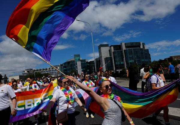 A scene from Dublin’s Pride parade in 2023. In Ireland about 10 years earlier, a discussion on marriage equality during a citizens’ convention gave participants space to be vulnerable and recognize contrary perspectives.CLODAGH KILCOYNE/Reuters