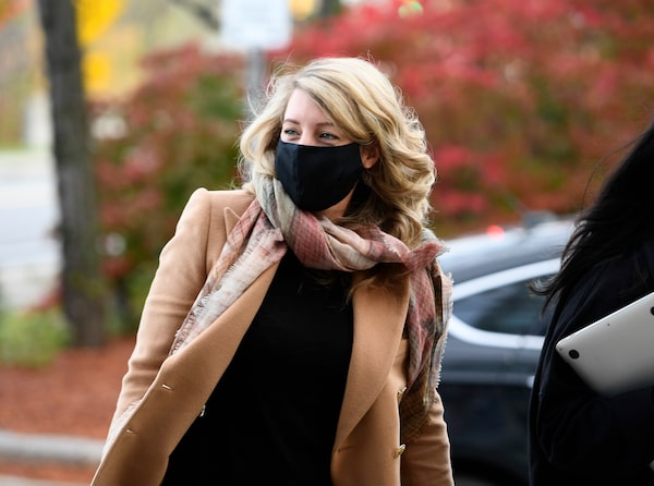Minister of Foreign Affairs Mélanie Joly arrives for a cabinet meeting in Ottawa, a day after federal ministers were sworn in, on Oct. 27.Justin Tang/The Canadian Press