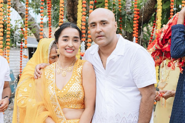 Raji Kaur Aujla and her brother at her wedding sangeet in their family’s backyard in Vernon, B.C., in August, 2024.Kate Tutty