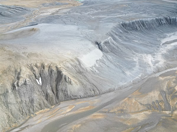 Devon Island's thawing permafrost slumps onto sedimentary fans that cover ancient terraces beside a riverbed that flows through the heart of a 30-million year old crater.Sam Anderson/The Globe and Mail