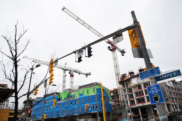 Construction crews work at a condominium development site on the north east corner of Cherry and Mill Sts. in Toronto, on April 5.Fred Lum/The Globe and Mail