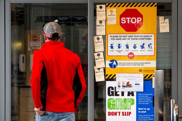 A man walks into Sunnybrook Hospital, where a patient was being treated in isolation for what Canadian health officials called the first presumptive confirmed case of novel coronavirus in Toronto on Jan. 26, 2020.CARLOS OSORIO/Reuters