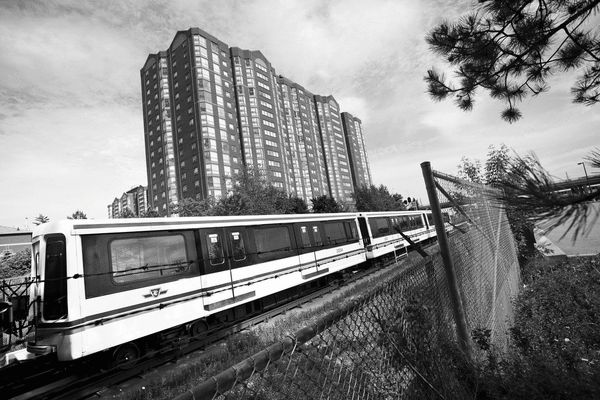 A Scarborough Rapid Transit train drives near Kennedy station.photo illustration (picture: Kevin van Paassen/The Globe and Mail)