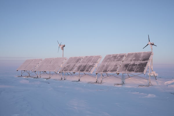 The solar and wind power systems at the Arctic Research Foundation's greenhouse project in Gjoa Haven, Nunavut, in 2023.Amber Bracken