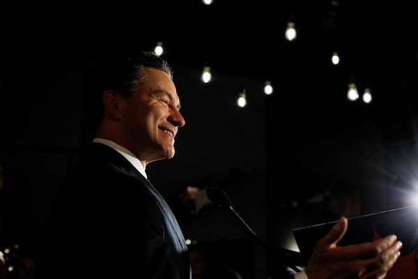 Canada's federal Conservative leader Pierre Poilievre speaks to supporters on Monday after winning a by-election in Alberta's Battle River-Crowfoot riding.Amber Bracken/Reuters