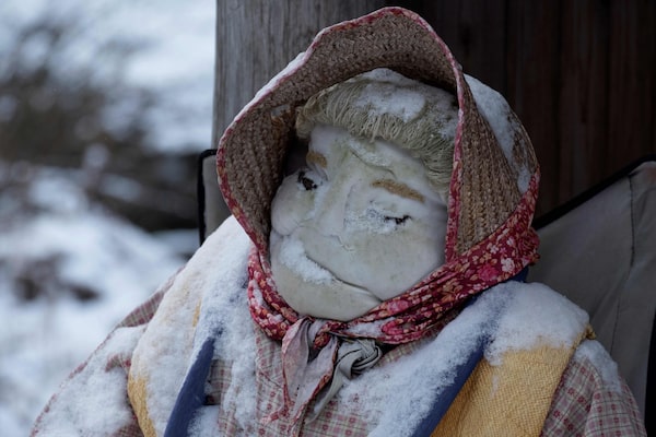 In Nagoro, snow covers one of the life-sized dolls at a bus stop. Nagoro's dolls now outnumber its humans by more than 10 to 1.KAZUHIRO NOGI/AFP/Getty Images
