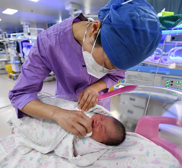 A nurse takes care of a newborn at a hospital in Fuyang, China.AFP via Getty Images