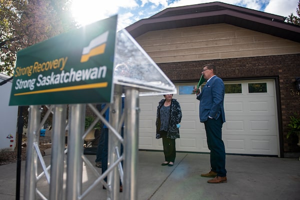 Saskatchewan Party Leader Scott Moe following at a media event in the driveway of a supporter's home, in Saskatoon, on Sept. 30, 2020.Liam Richards/The Canadian Press