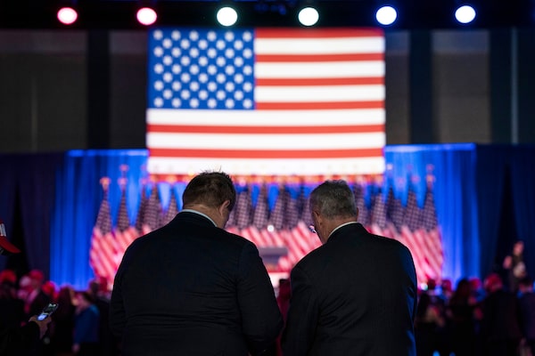 Supporters of Donald Trump check their phones at a U.S. election watch party in West Palm Beach, Fla., on Nov. 5.HAIYUN JIANG/The New York Times News Service