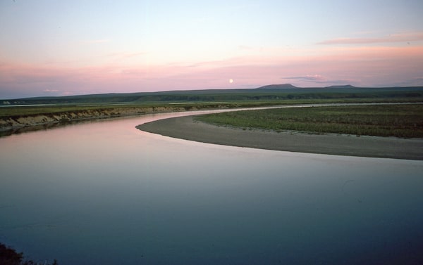 Moonrise over Alaska's Noatak River at midnight. Travelling in the Arctic gives one a sense of immensity, and fragility.David P. Silcox